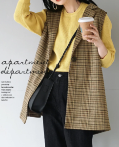 秋はチェックジレ